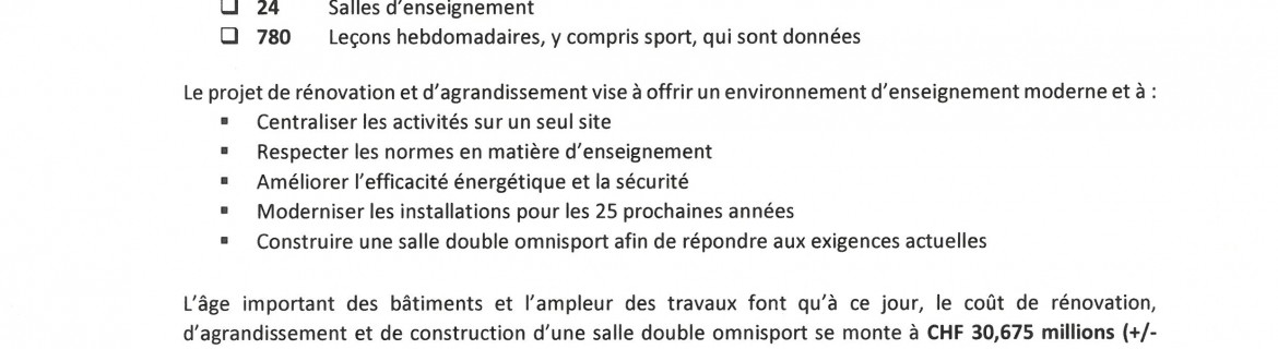 Invitation à la population – Rénovation et agrandissement du Collège Stockmar – Séances d’information